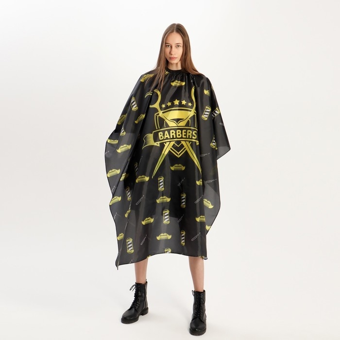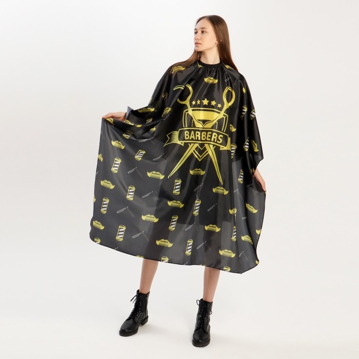 Пеньюар парикмахерский, с крючком, цвет чёрный/жёлтый
