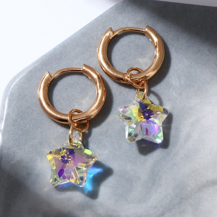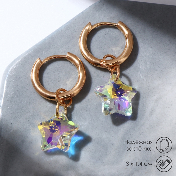 Серьги со съёмным элементом «Трансформер» кристаллик звёздочка, цвет радужный в золоте