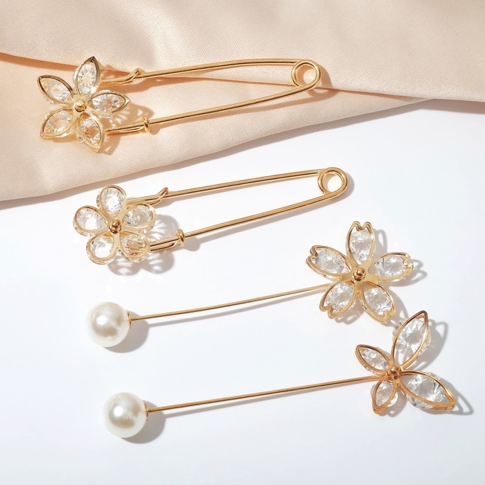 Набор булавок (4 шт.) «Цветы», 8 см, цвет белый в золоте