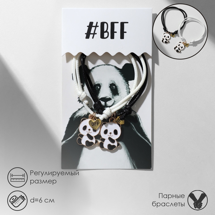 Браслеты «Неразлучники» панды и лапки, цвет чёрно-белый, d=6 см