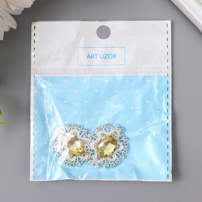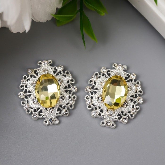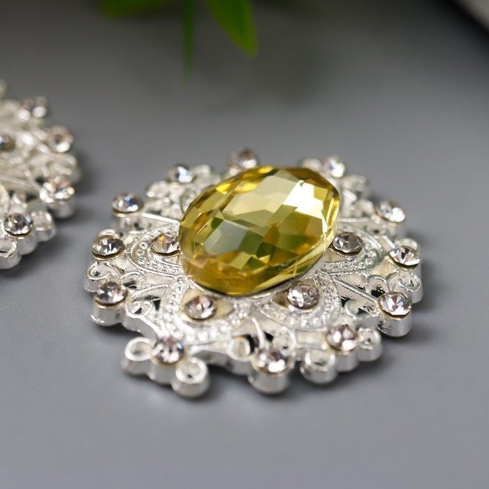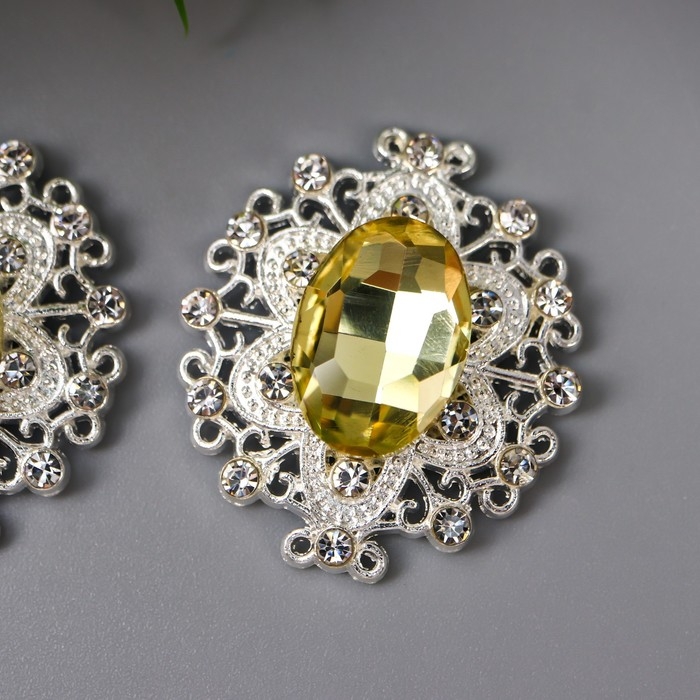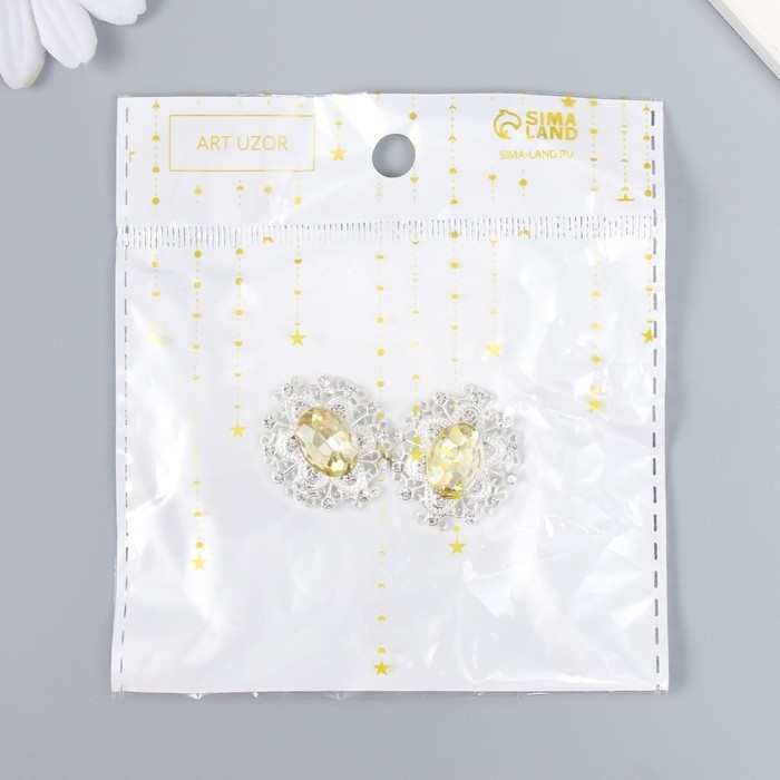Декор для творчества металл "Медальон узорный" жёлтый кристалл 2,6х2,4 см