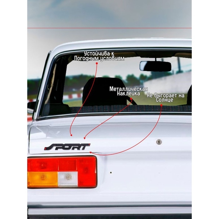 Наклейка на авто SPORT, металлическая, 14×2 см, черный