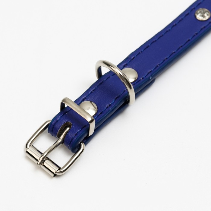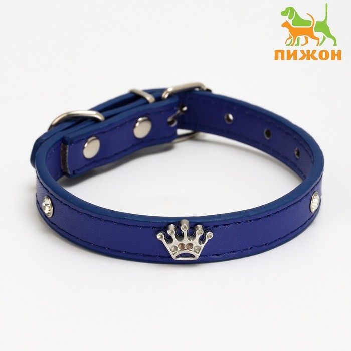 Ошейник "Корона" с металлическим декором и со стразами, 36 х 1,4 см, ОШ 24-31, синий