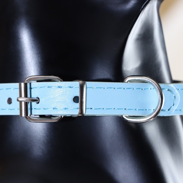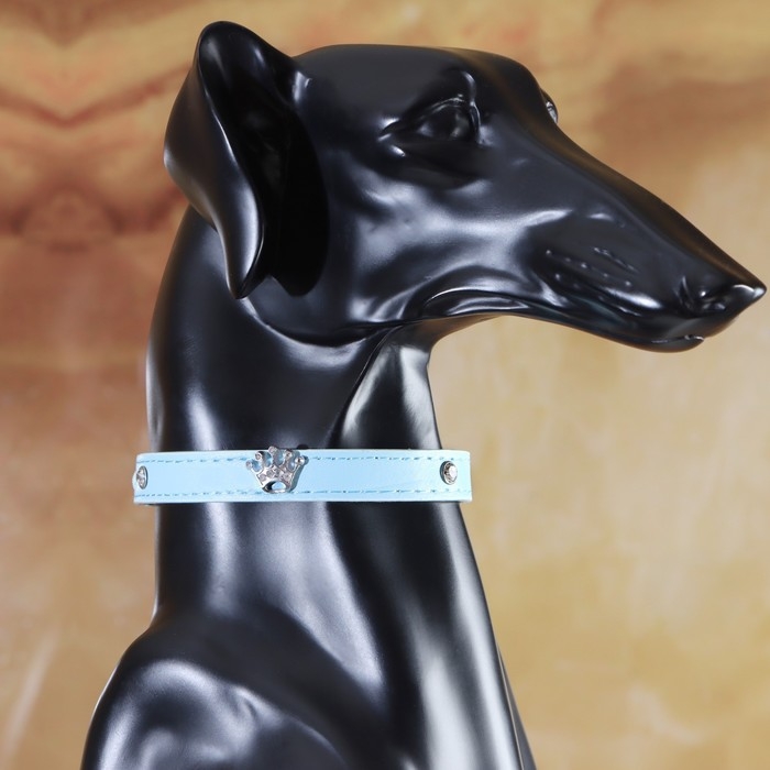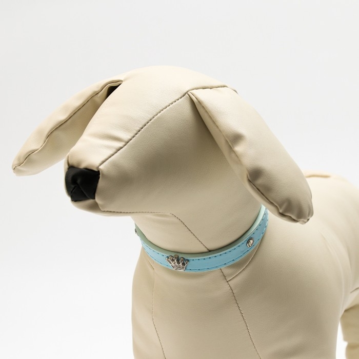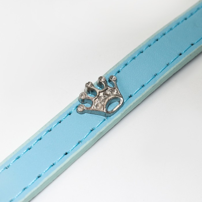 Ошейник "Корона" с металлическим декором и со стразами, 36 х 1,4 см, ОШ 24-31, голубой