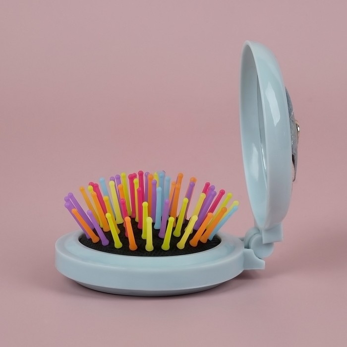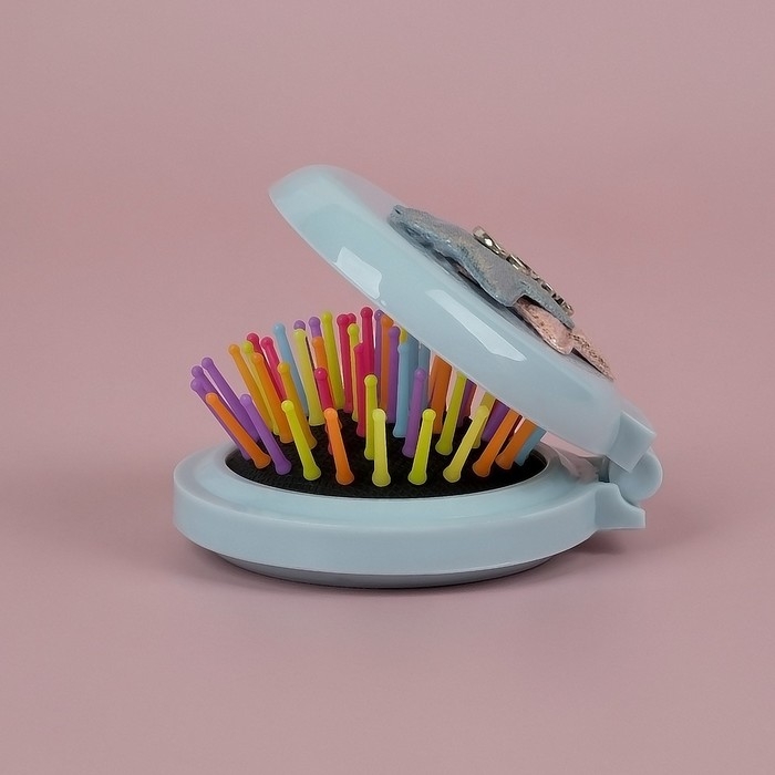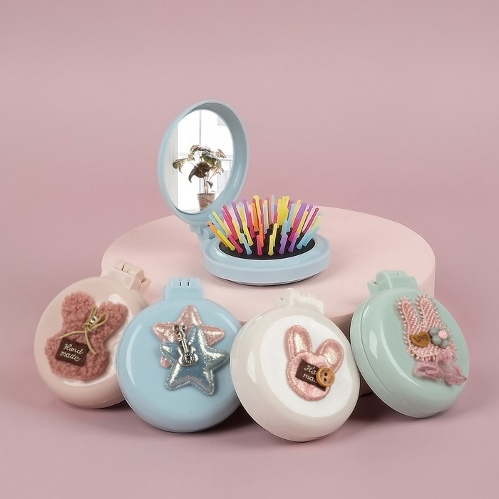 Расчёска массажная «Мягкие зверята», складная, с зеркалом, d = 7,5 см, рисунок МИКС