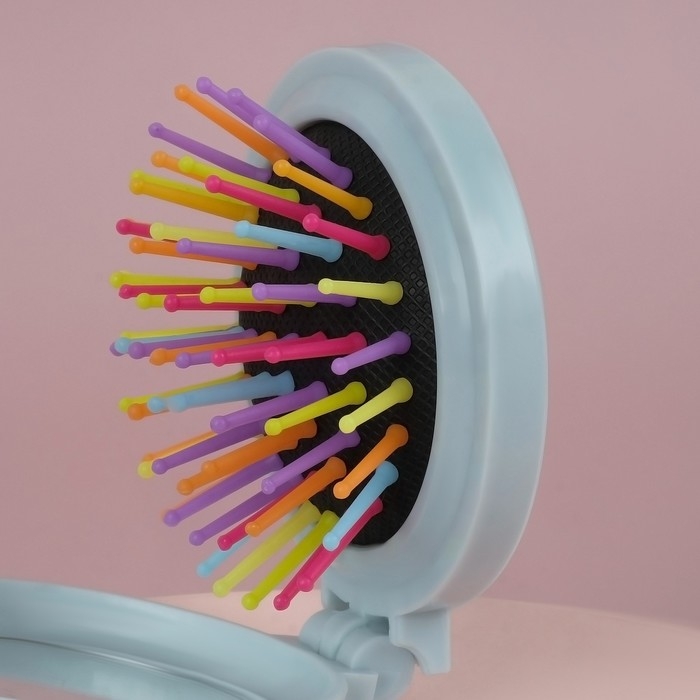 Расчёска массажная, складная, с зеркалом, d = 6 см, цвет МИКС