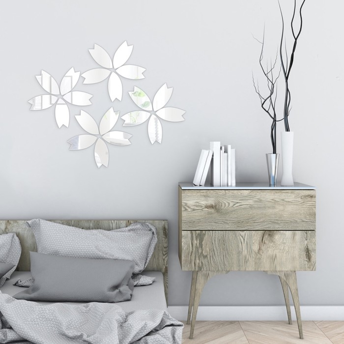 Наклейки интерьерные "Цветочки", зеркальные, декор на стену, набор 20 шт, шт 10 х 4.7 см