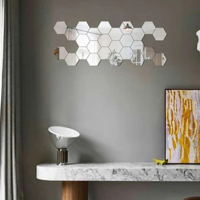 Наклейки интерьерные "Соты", зеркальные, декор настенный, набор 21 шт, шт 8 х 7 см