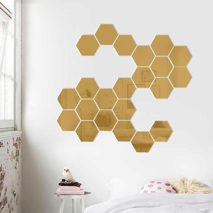 Наклейки интерьерные "Соты", зеркальные, декор настенный, набор 21 шт, 8 х 7 см