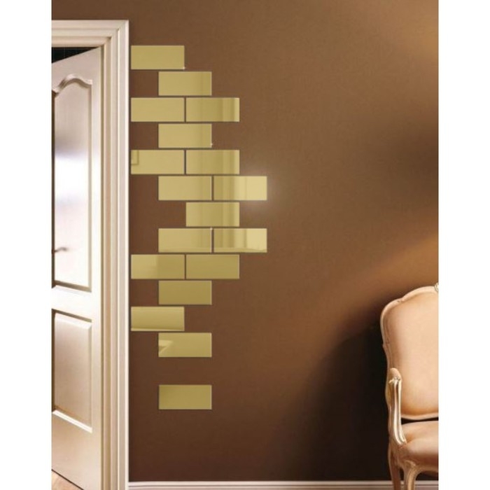 Наклейки интерьерные "Кирпичики", зеркальные, декор настенный, набор 18 шт, 15 х 6 см