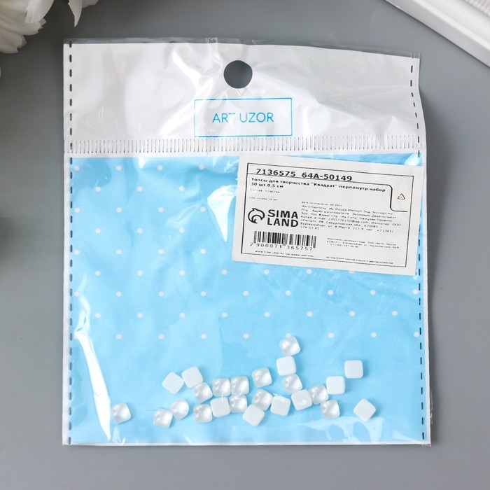 Топсы для творчества пластик "Квадрат" перламутр набор 30 шт 0,5 см