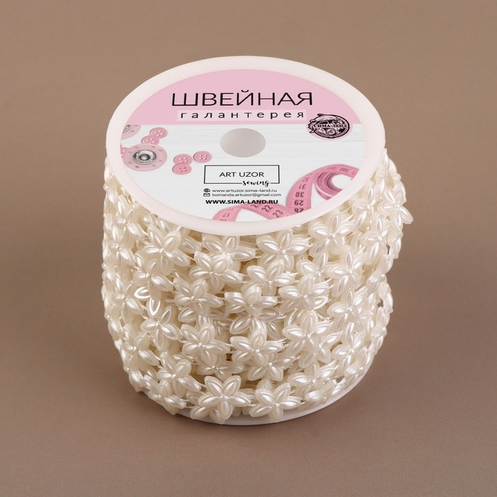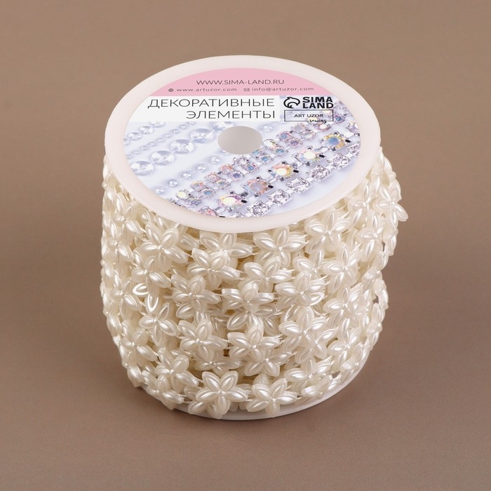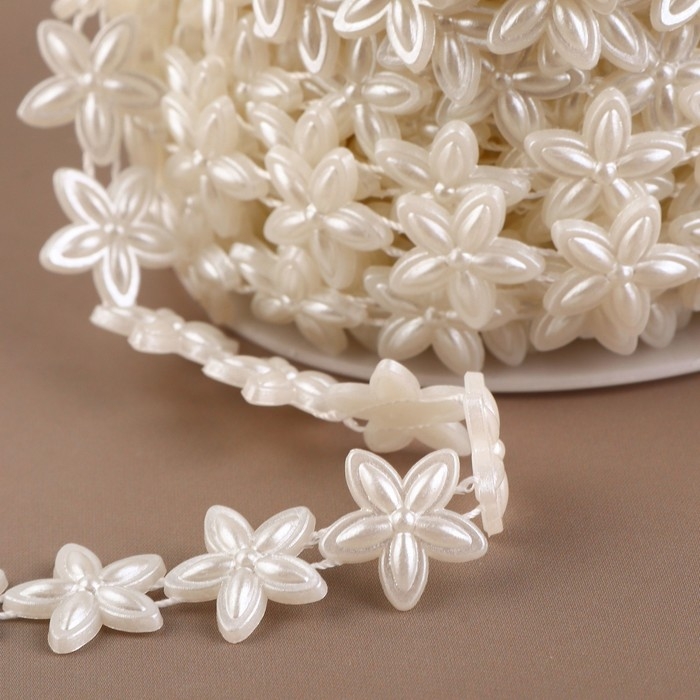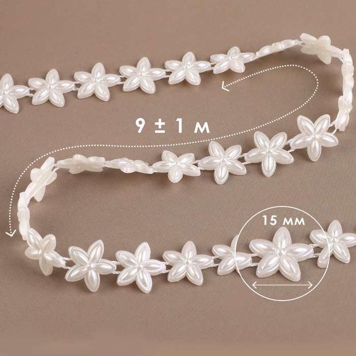 Жемчуг на нитях, плоский, «Цветы», 15 мм, 9 ± 1 м, цвет белый