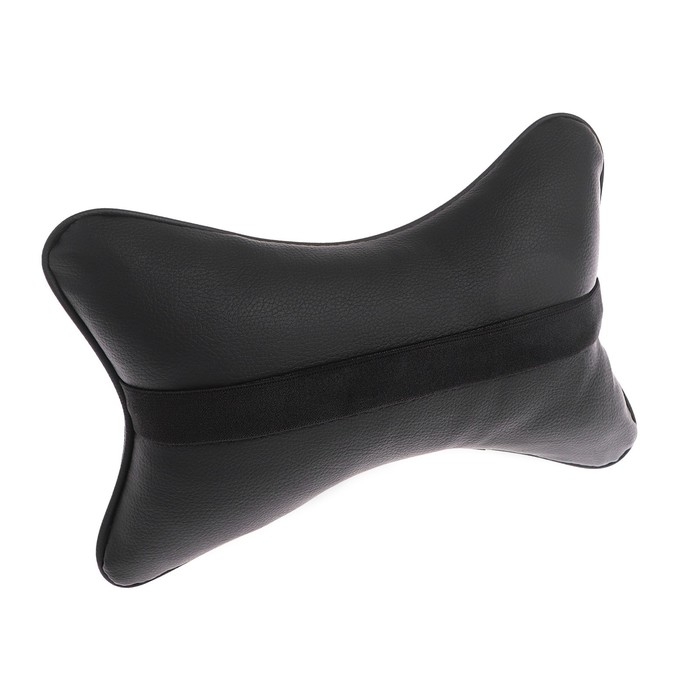 Подушка автомобильная косточка, на подголовник, экокожа, чёрный, 16х24 см