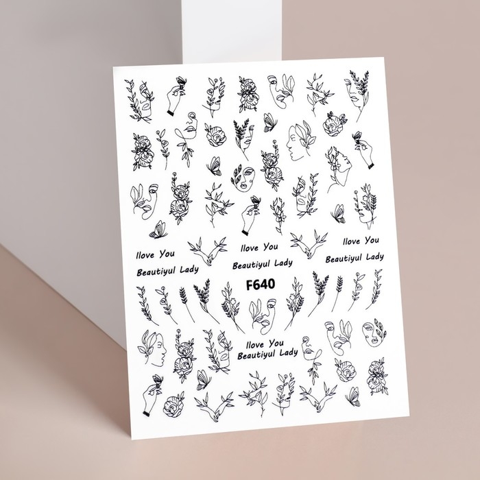 Наклейки для ногтей «Beautiful lady», цвет чёрный