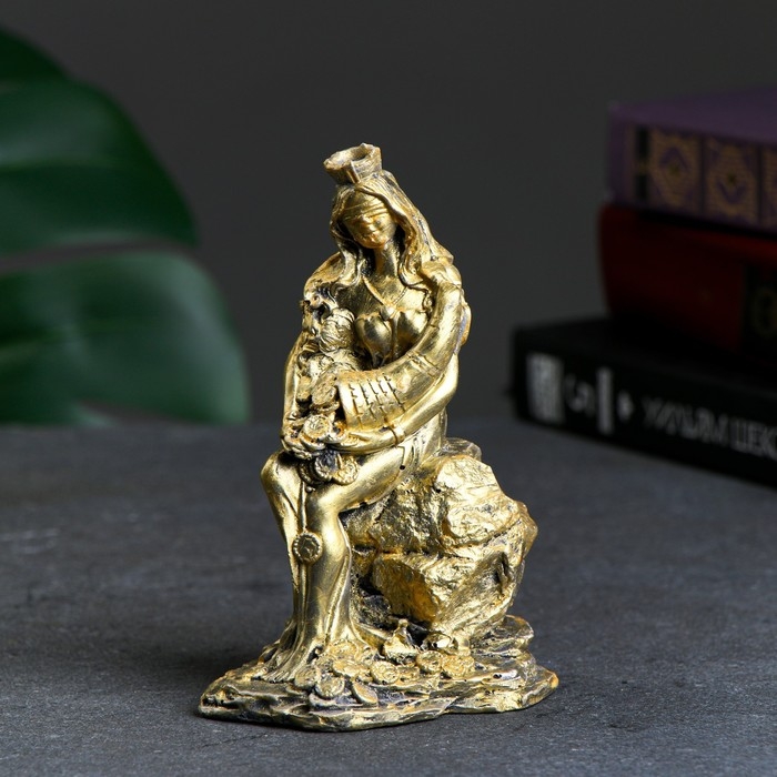 Фигура "Богиня Фортуна с рогом изобилия" золотой, 13х8х8см