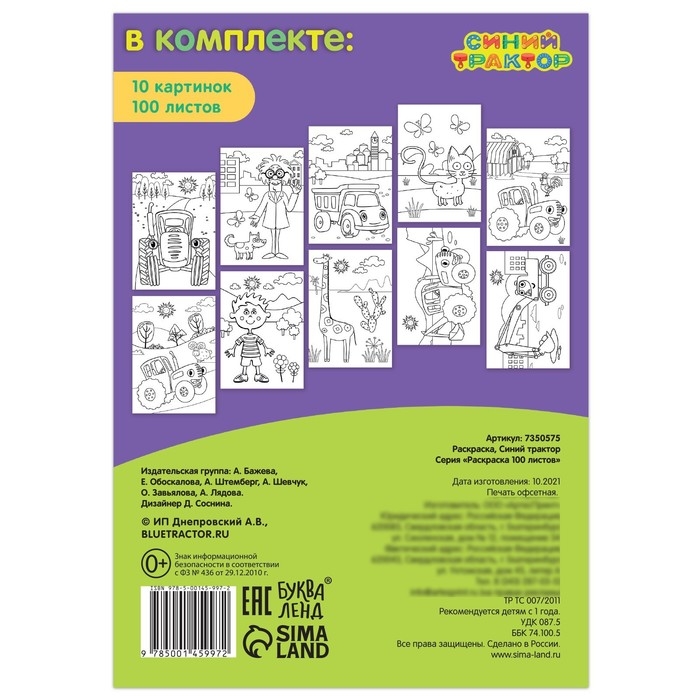 Увлекательная книжка-раскраска «Синий трактор» создана специально для творческого развития малышей с раннего возраста.