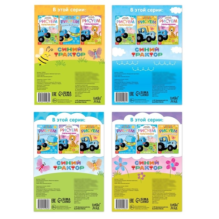 Набор пальчиковых раскрасок, 4 шт. по 16 стр., А5, Синий трактор