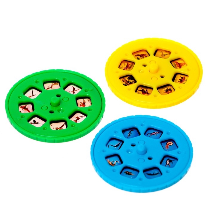 Вставив в проектор диск со слайдами и направив на любую ровную поверхность, вы получите яркие изображения с разными динозаврами.