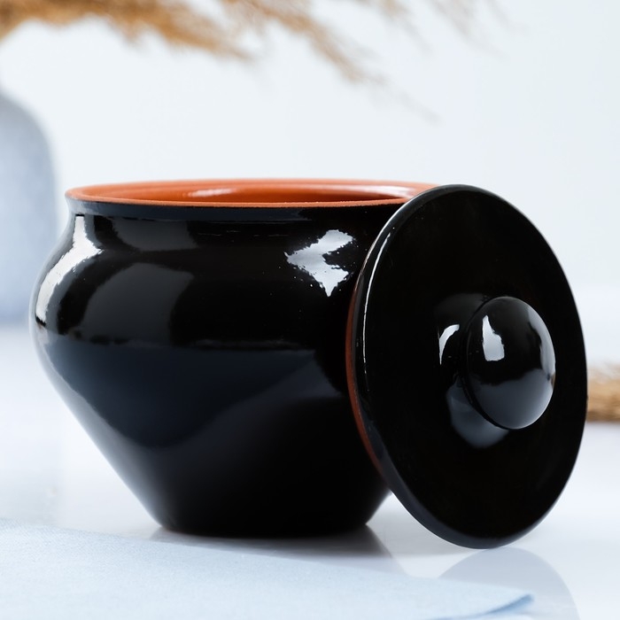 Горшочек под жаркое с крышкой "Вятский" 0,9л, черный