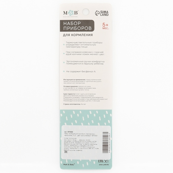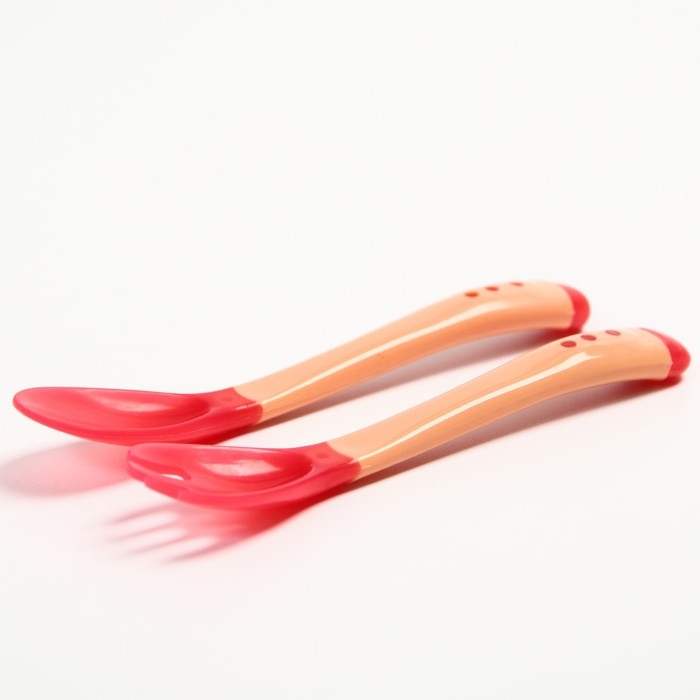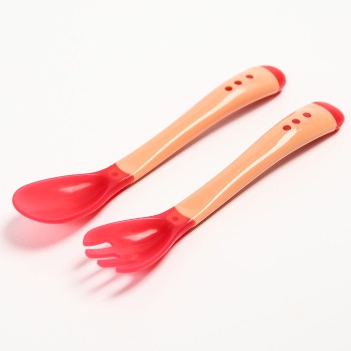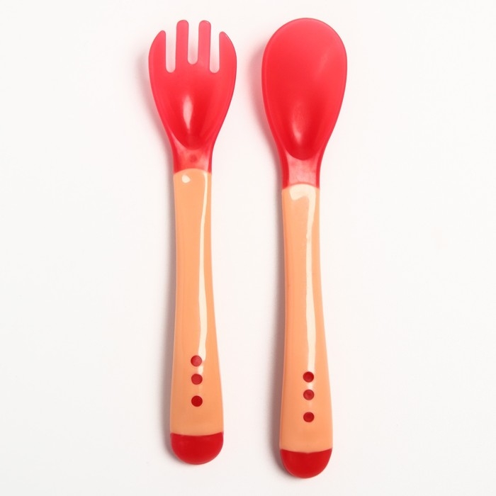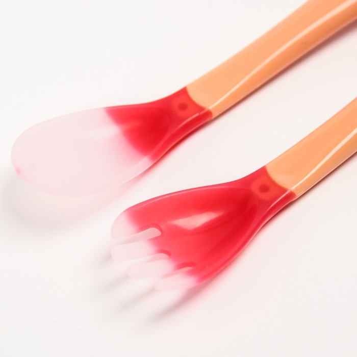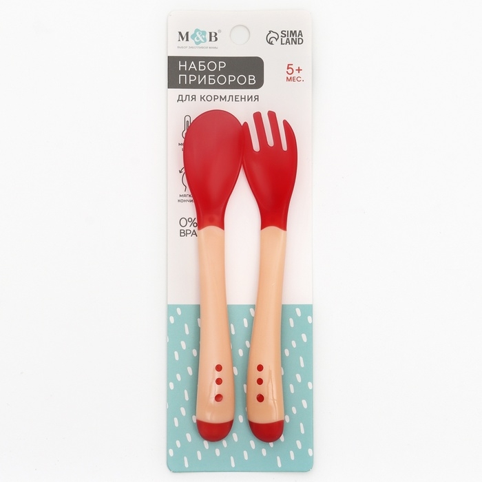 Набор приборов для кормления: термовилка и термоложка, 2 шт., цвет красно-бежевый