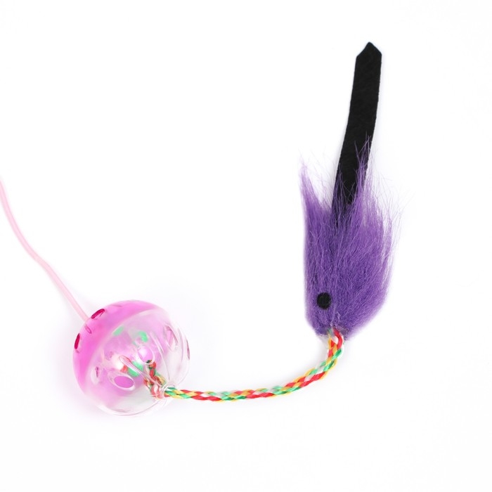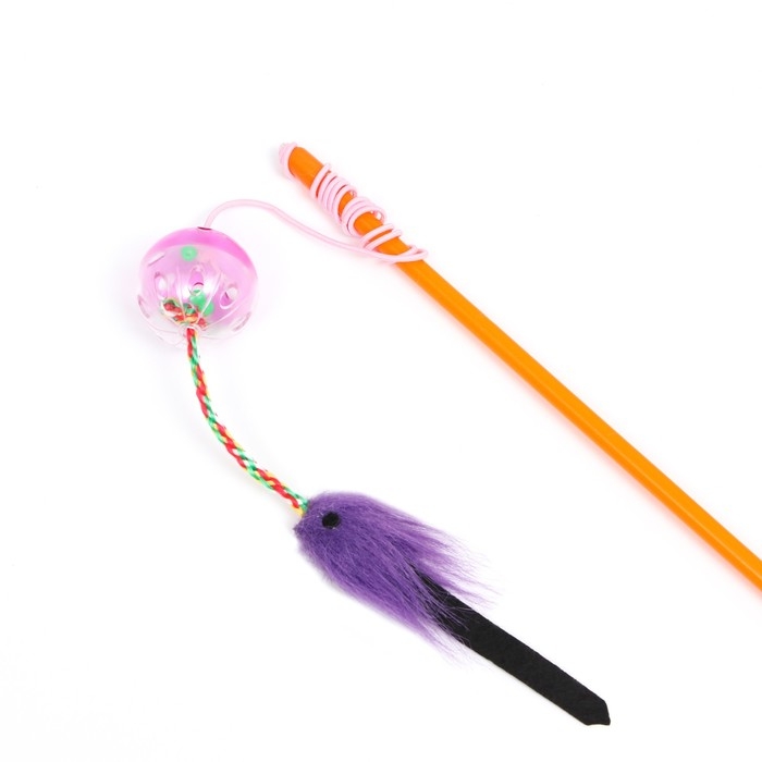 Дразнилка-удочка с шар-погремушкой и хвостиком, 49 см, микс цветов