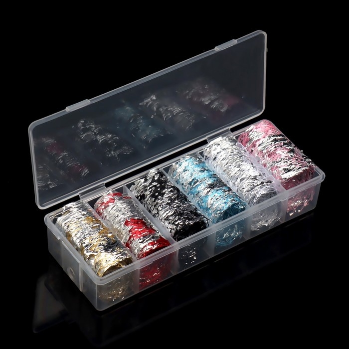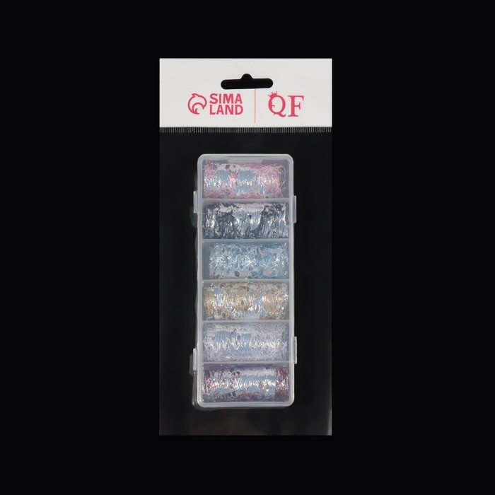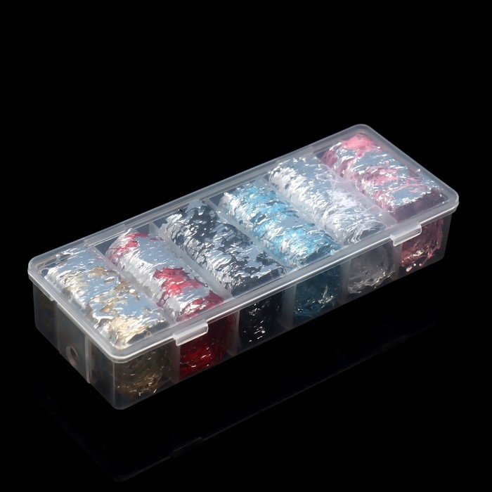 Паутинка с фольгой для ногтей, переводная, 20 х 10 см, 6 шт, в пластиковом органайзере, цвет разноцветный/серебристый