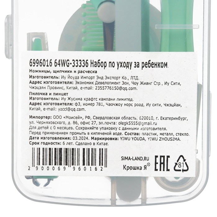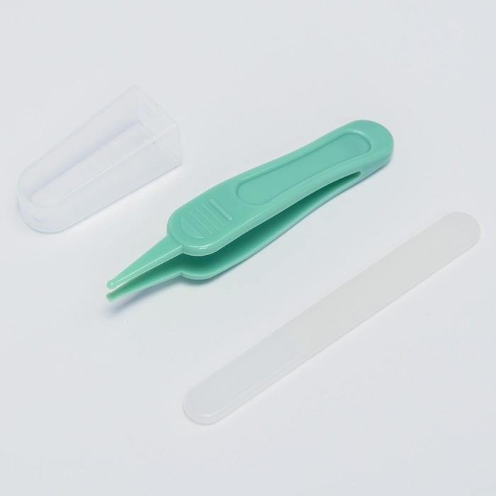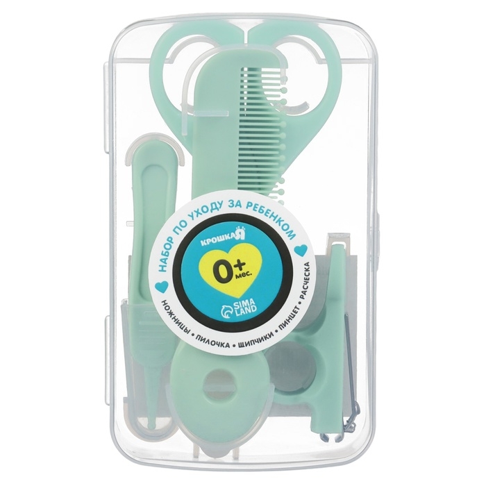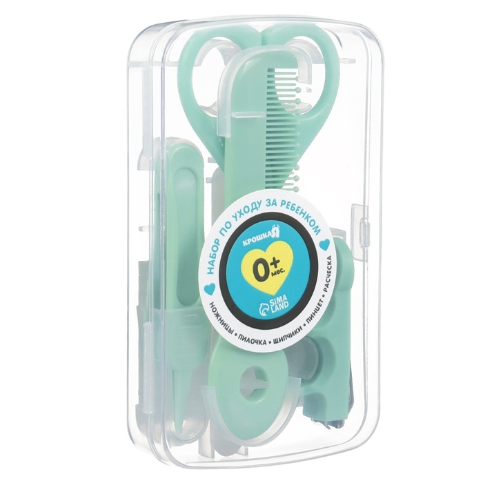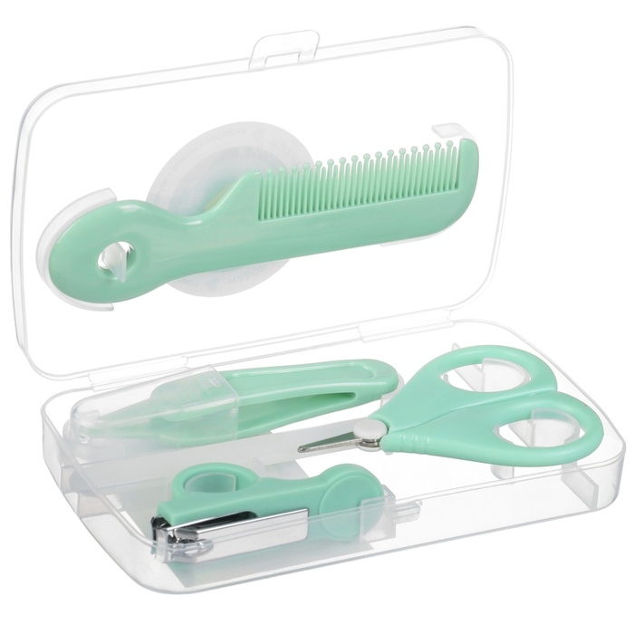 Набор по уходу за ребенком, 5 предметов (расческа, пинцет, ножницы, книпсер, пилка), цвет зеленый