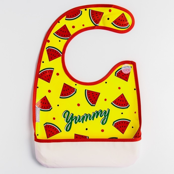 Нагрудник для кормления «Арбузики» непромокаемый на липучке, с карманом