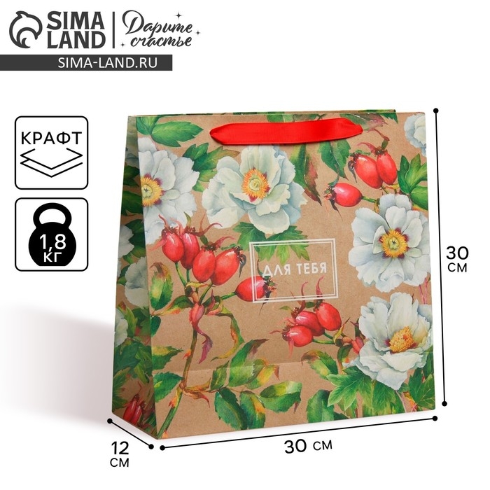 Пакет подарочный крафтовый квадратный, упаковка, «For you», 30 х 30 х 12 см