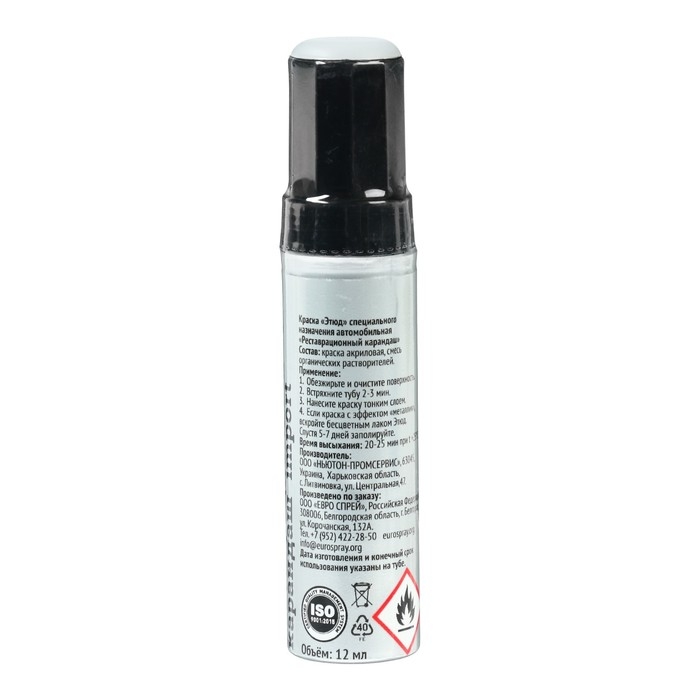 Мелкие повреждения, сколы, счёсы или царапины, могут легко устраняться самостоятельно, без обращения к специалистам на СТО. Автомобильная краска в удобной тубе ёмкостью 12 мл. с тонкой кистью – реставрационный карандаш ЭТЮД – идеальное реставрационное средство для устранения незначительных дефектов на лакокрасочном покрытии автомобилей.