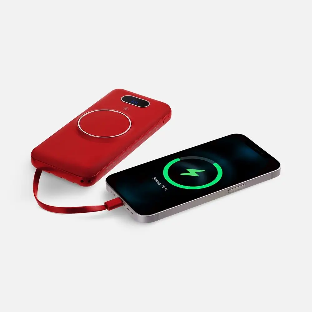 Интересная особенность аккумуляторов Omni — совершенно автономная конструкция: встроенные кабели позволяют заряжать как самые разные электронные устройства, так и сам аккумулятор. Если же смартфон поддерживает беспроводной заряд, то кабель вообще не нужен. Наглядный индикатор заряда в процентах.