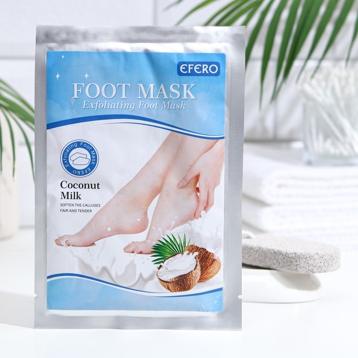 Отшелушивающая маска-носки для ног на основе кокосового молока, 1 пара
