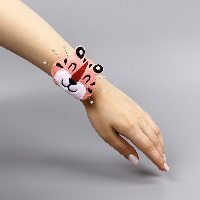 Игольница на браслете «Тигр», 23 × 6,5 см, цвет розовый