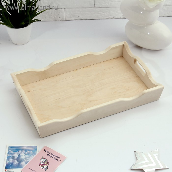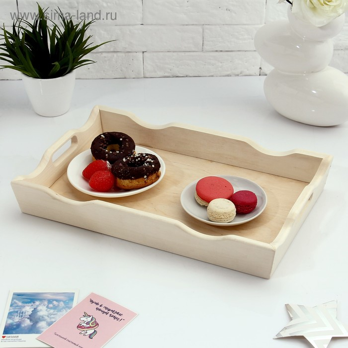 Поднос деревянный фигурный для завтрака со вставкой, МАССИВ, 40х25см