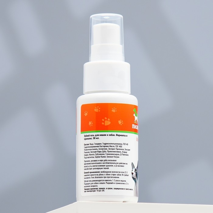 Зубной гель "Пижон" для кошек и собак, ферменты и прополис, 50 мл