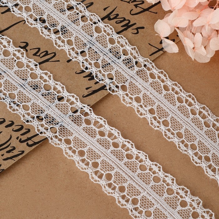 Кружево капроновое, 28 мм × 10 ± 1 м, цвет белый