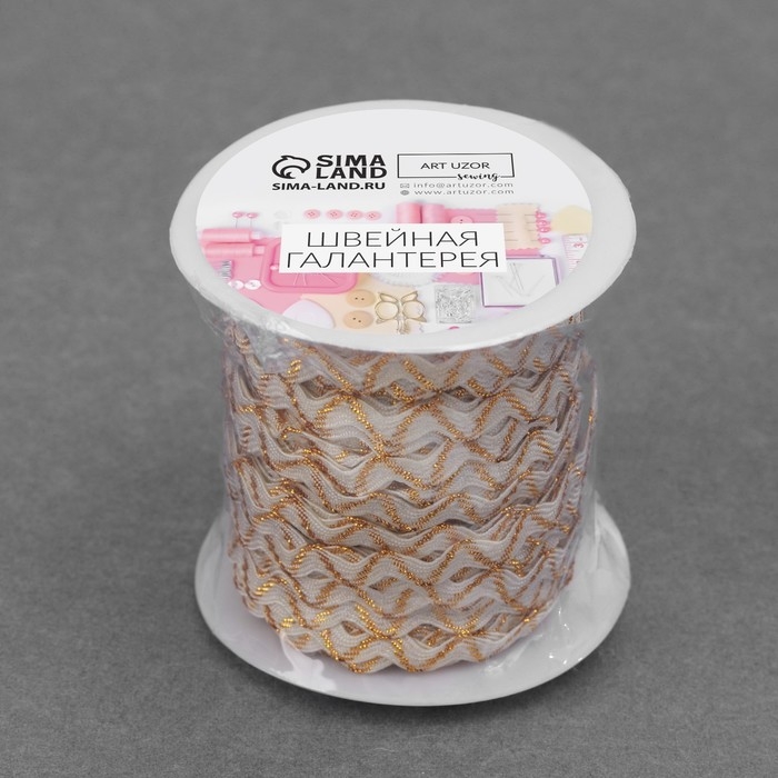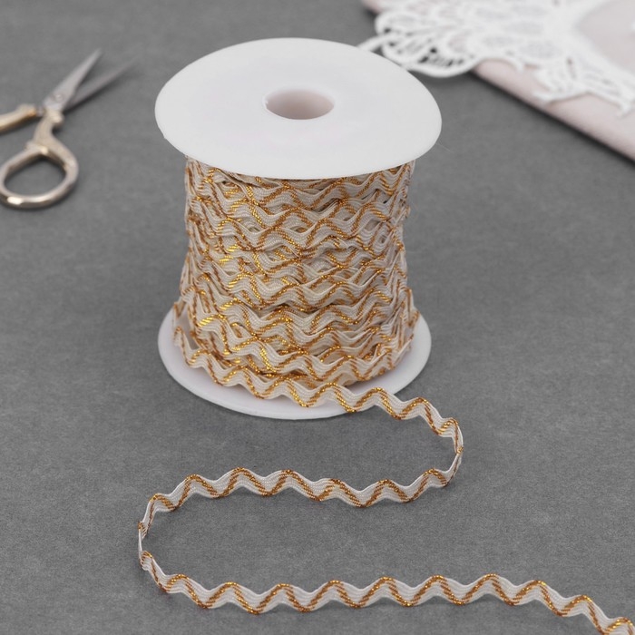 Тесьма отделочная «Вьюнчик» с золотой нитью, 5 мм, 27 ± 1 м, цвет бежевый