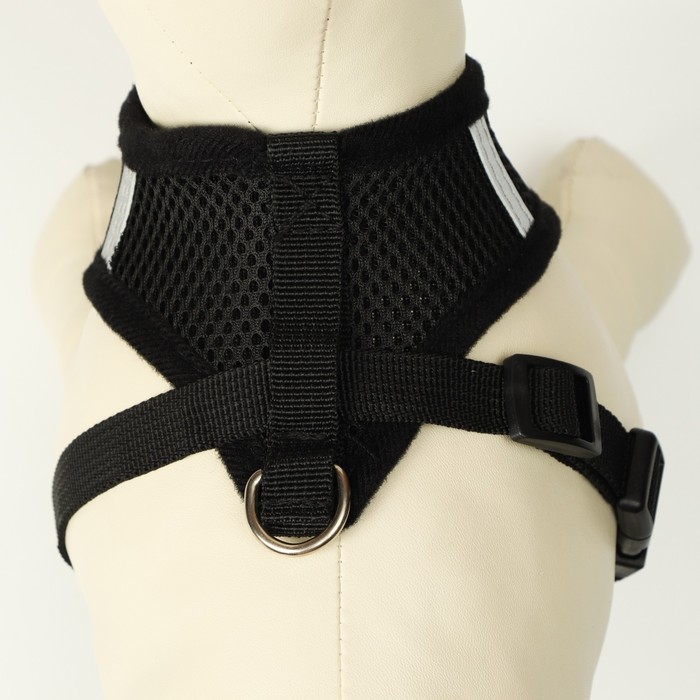 Комплект амуниции с мягкой шлейкой и светоотражающей нашивкой, M, ОШ 26 см, ОГ 36-44 см, чёрный 7614