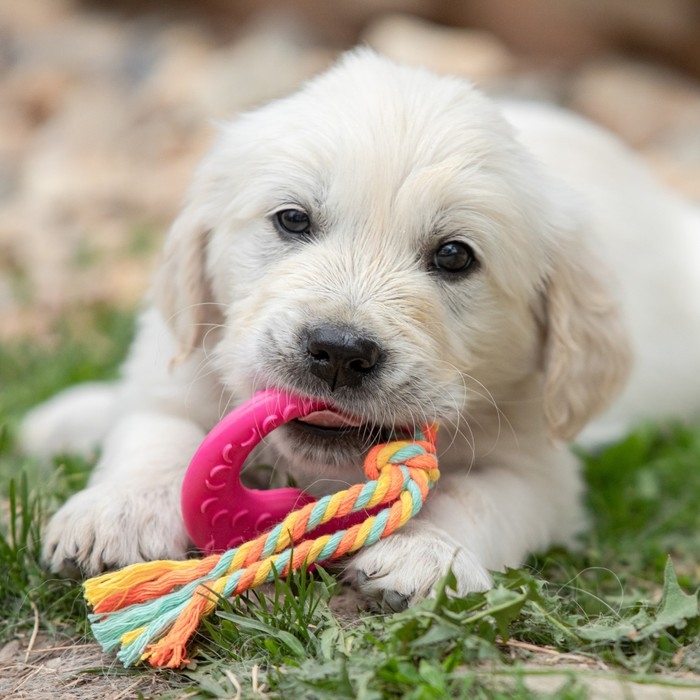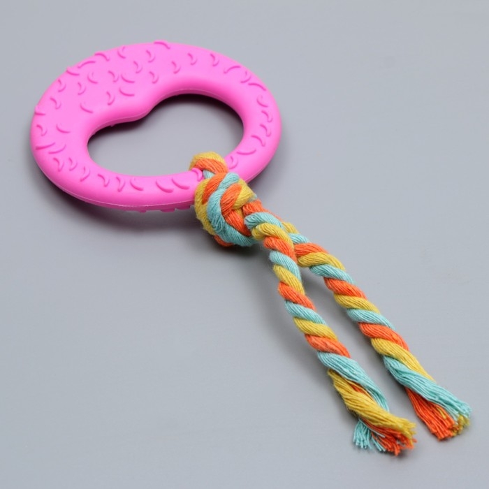 Игрушка жевательная с канатом "Гиря", розовая