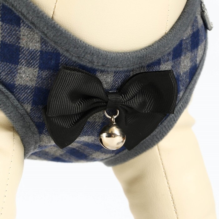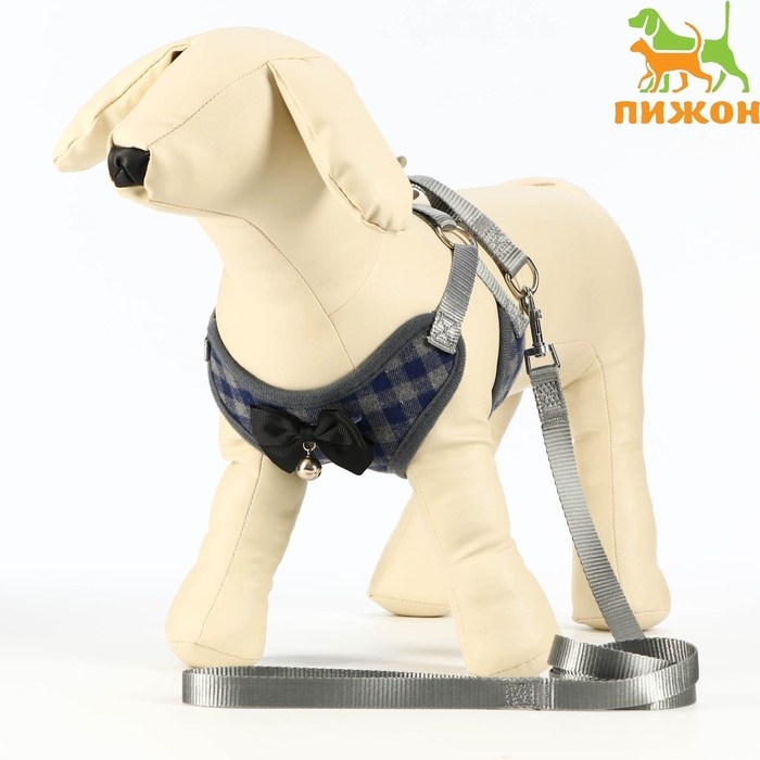 Стильный прогулочный комплект для собак в клетку с украшением в виде бабочки и бубенцом. Шлейка регулируется, поводок круглый прочный , ручка поводка не доставляет неудобств для вас при натежении. Шлея для собак 3 , 5 , 10 , 15 кг средних и мелких пород : шпица , бульдога , чихуахуа , йорка , мопс , такс и маленьких и больших кошек , котов типа мейн кун . Шлейка текстильная , регулируется металическим креплением. Поводок крепится к металлическому кольцу карабином. Шлейка исключит побег животного, если правильно подобрать размер и отрегулировать ремни.