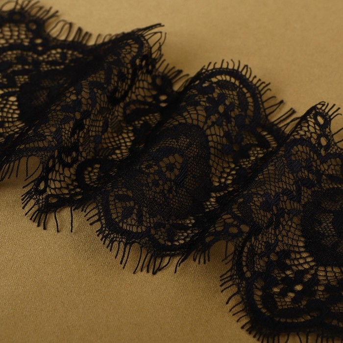 Кружево реснички, 100 мм × 9 ± 0,5 м, в бобине 3 шт по 3 м, цвет чёрный