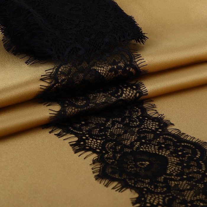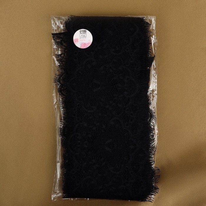 Кружево эластичное, 17 мм × 10 ± 1 м, цвет чёрный