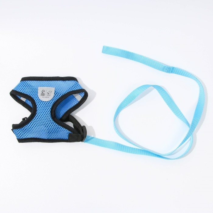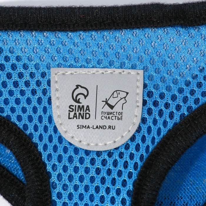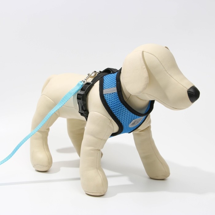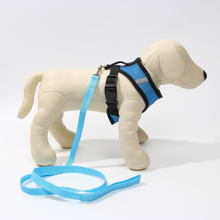 Шлейка дышащая с поводком и светоотражающей нашивкой, S, ОШ 27, ОГ 30-38, синяя