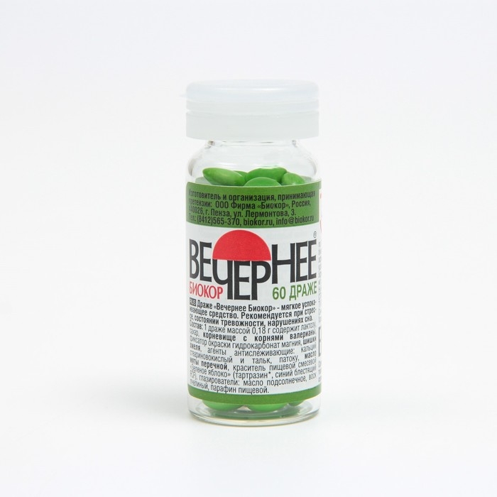 - Благодаря природному комплексу трав драже Вечернее «Биокор» обладает мягким успокаивающим и спазмолитическим действием.
