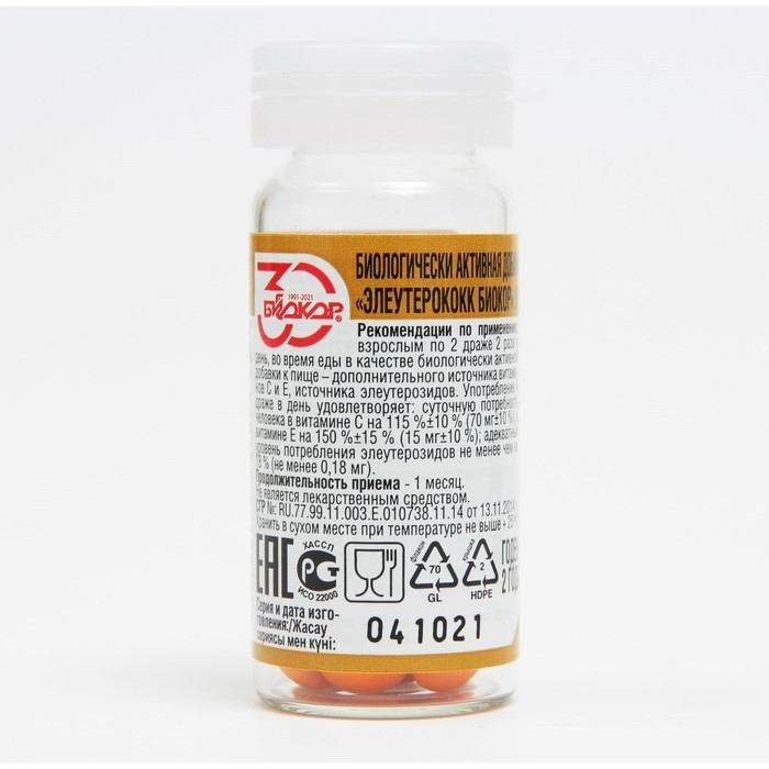Витамины Е и С, входящие в состав драже, обеспечивают антиоксидантную защиту клеток организма. Драже Элеутерококк «Биокор» придает бодрость и выносливость, улучшает аппетит.