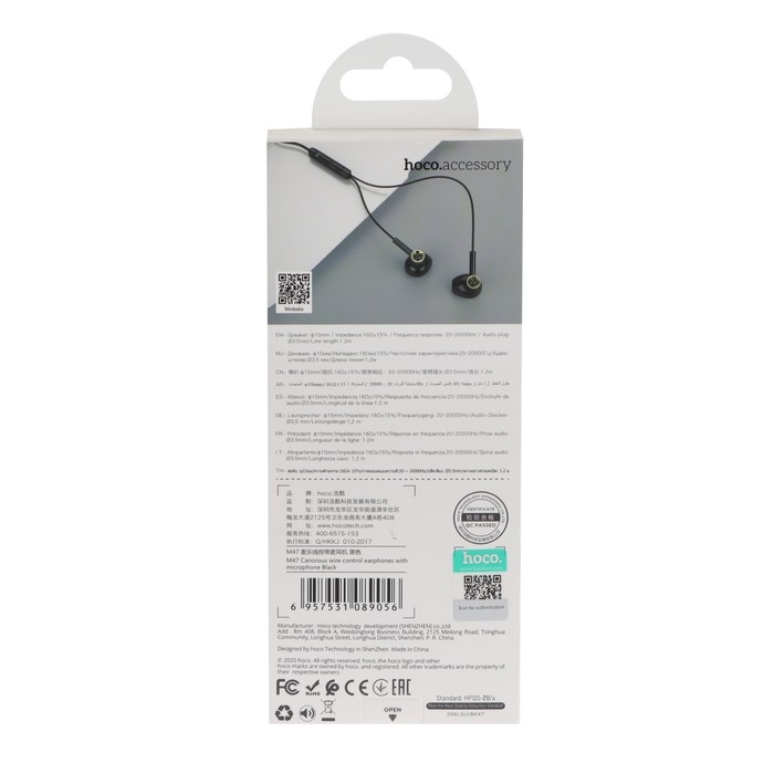 Наушники Hoco M47, проводные, вкладыши, микрофон, 3.5 мм, 1.2 м, черные