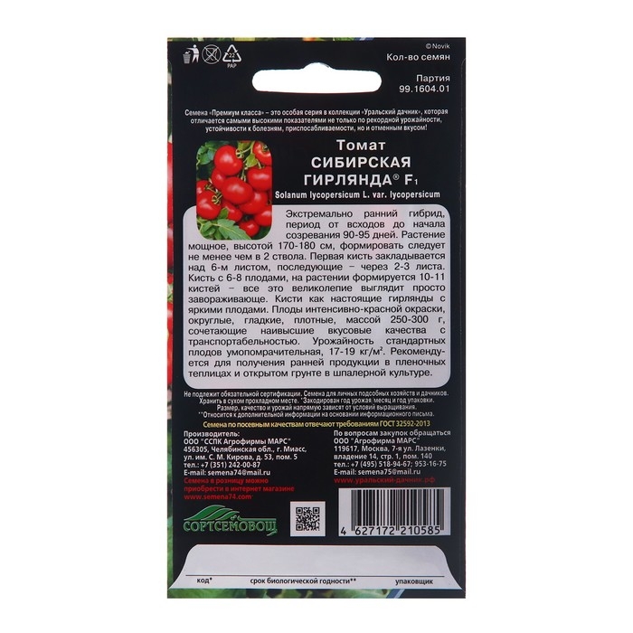 Семена Томат "Сибирская гирлянда", F1, 10 шт