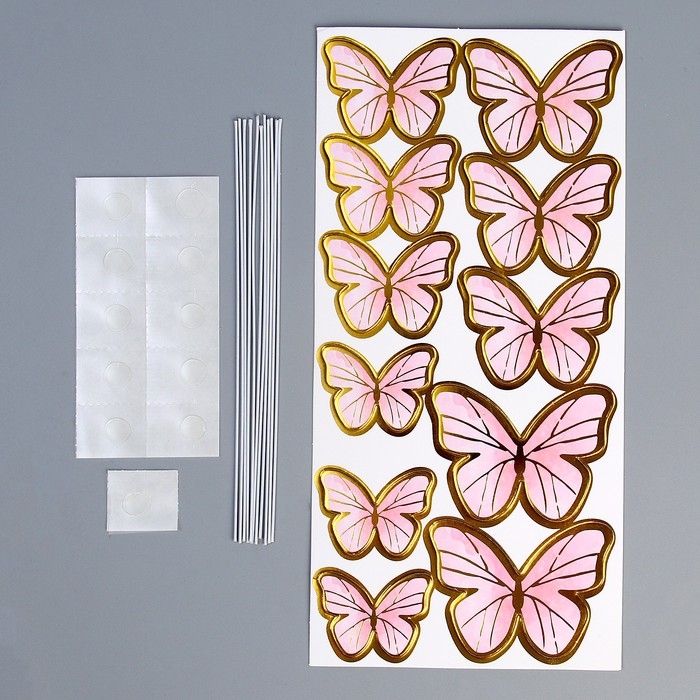 Набор топперов «Бабочки» 10 шт., цвет розовый