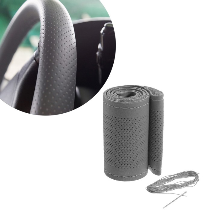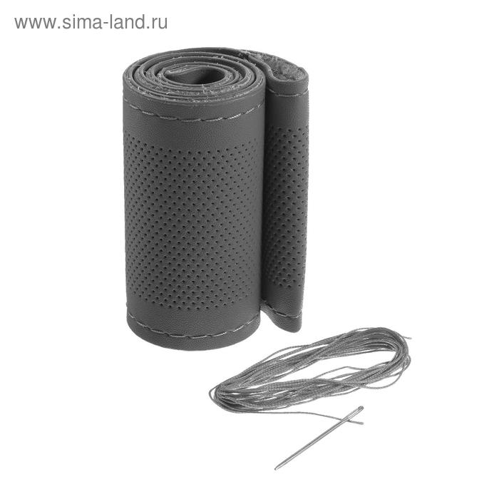 Оплетка на руль Cartage, 38 см, кожа PU, антискользящая, серый