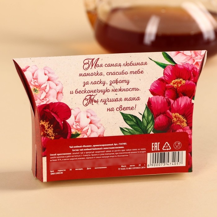 Чай зелёный подарочный с жасмином «Любимой маме», 20 г.